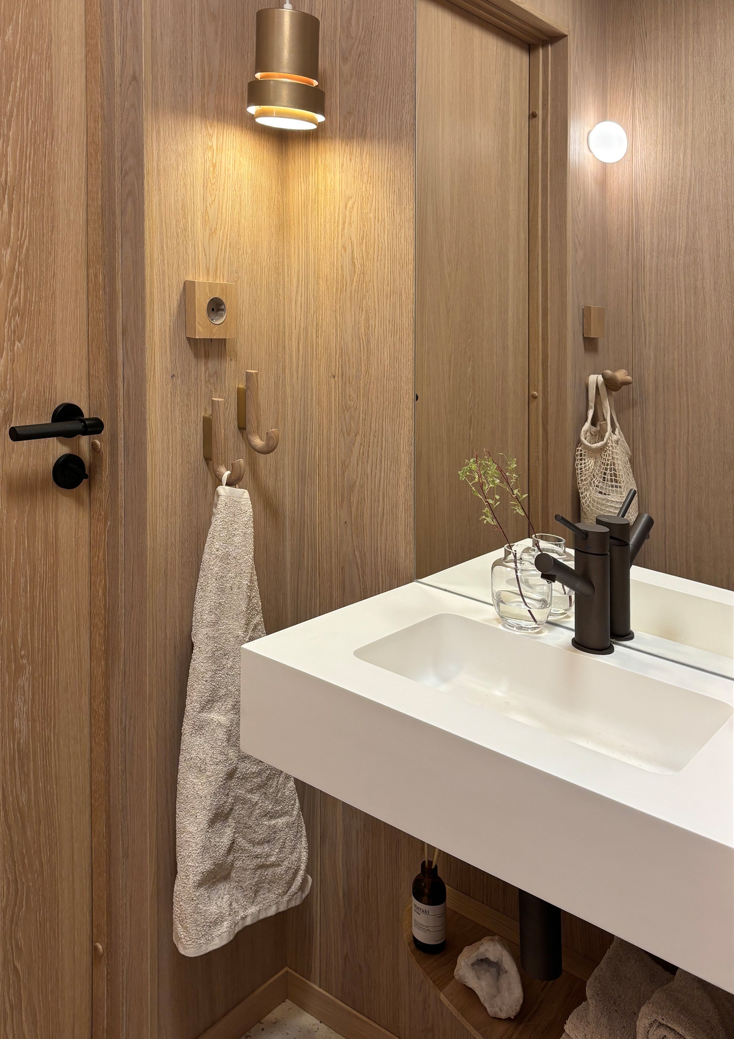 The products in oak are milled out of solid wood and come in two shades of pigmented oak from durable forest. All products are also supplied in white fiber concrete.